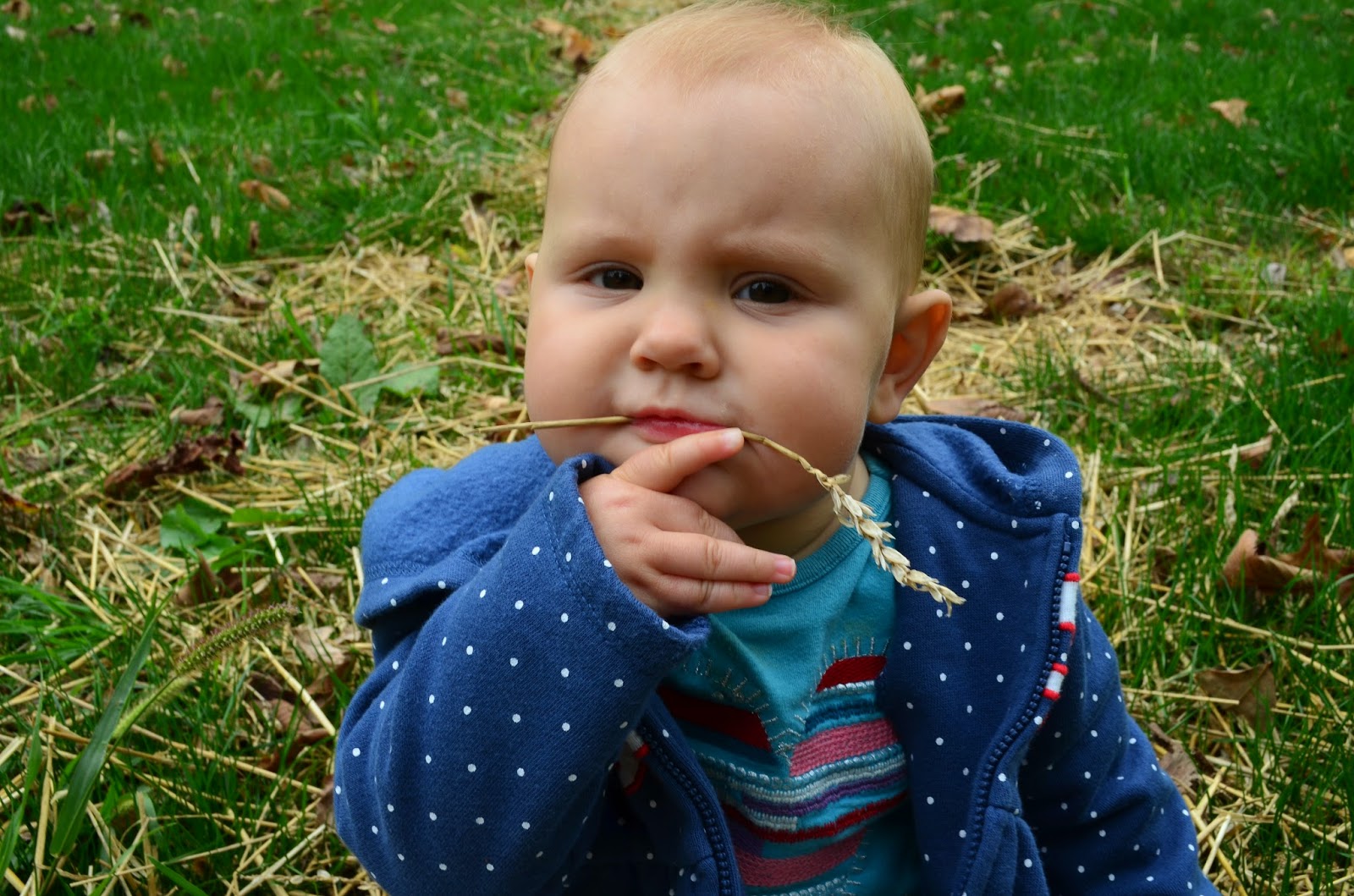 She has 2 teeth and drools constantly. Her favorite food is yogurt (Chobani key lime, to be exact). We're still not sure what color her eyes are. Now that she's crawling, she's getting around everywhere she wants to go, and she loves that. Her favorite activities are playing in the pantry, laughing at her brother, and being with Grandpa Garth.